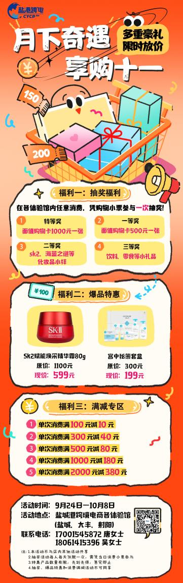 莎士比亞跨境電商國際商貿(mào)小鎮(zhèn)將于2025年9月24日至10月8日推出以“月下奇遇,享購十一”為主題的系列促銷活動。活動期間,消費(fèi)者可在鹽城、大豐、射陽三地的跨境電商體驗(yàn)館享受多重福利:消費(fèi)即可參與100%中獎抽獎,獎品涵蓋千元購物卡、熱門美妝小樣等;單筆消費(fèi)滿100元起即可參與多檔滿減優(yōu)惠,最高立減380元;更有爆款單品直降促銷,如SK2賦能煥采精華霜由原價1100元優(yōu)惠至599元,誠意回饋顧客。本次活動通過線上線下多渠道聯(lián)動宣傳,并提前備足貨源、優(yōu)化服務(wù)流程,力求為消費(fèi)者帶來優(yōu)質(zhì)、便捷的購物體驗(yàn),進(jìn)一步激發(fā)節(jié)日消費(fèi)市場活力。