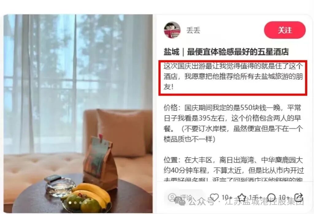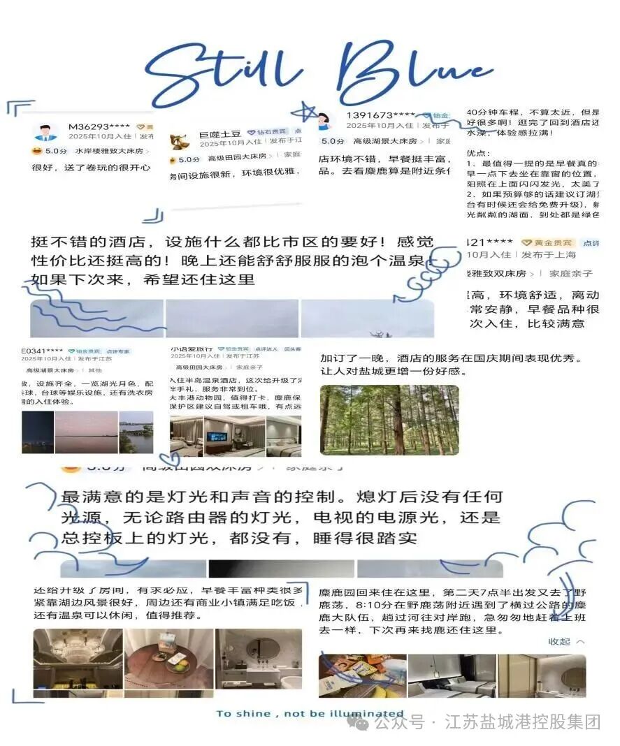 國慶期間,酒店各部門通力協(xié)作:后勤行政支援一線,參與餐飲服務(wù)、客房鋪床、布草運送、質(zhì)檢等工作;前廳、中西餐廳、溫泉館、安保等服務(wù)崗位全員在崗,保障運營順暢。游客在小紅書、攜程等平臺留下的大量好評,成為這場攻堅中最珍貴的回響。一句“我愿意把他推薦給所有去鹽城旅游的朋友!”不僅是認(rèn)可,更是酒店與客人之間“雙向奔赴”的最好見證。