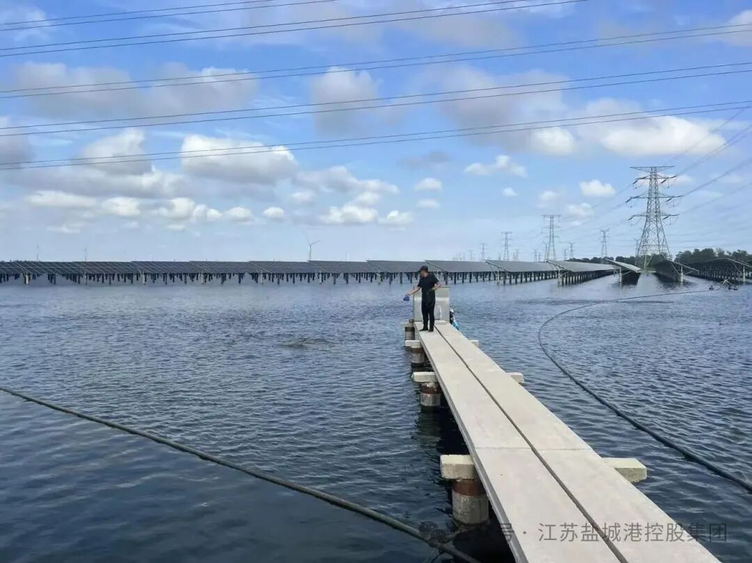 在鹽農(nóng)華豐7956畝的水域上,光伏板整齊排列如藍(lán)色海洋,水下魚(yú)蝦游弋正歡。這個(gè)由鹽城港集團(tuán)與悅達(dá)投資聯(lián)合打造的項(xiàng)目,以“一地兩用、漁光互補(bǔ)”模式實(shí)現(xiàn)“上發(fā)電、下養(yǎng)魚(yú)”的生態(tài)奇跡。自2024年10月15日并網(wǎng)運(yùn)行以來(lái),年均發(fā)電量達(dá)4.43億千瓦時(shí),每年可節(jié)約標(biāo)煤13.34萬(wàn)噸,減少二氧化碳排放36.65萬(wàn)噸,提升養(yǎng)殖密度20%。