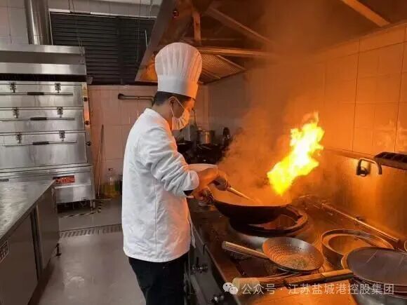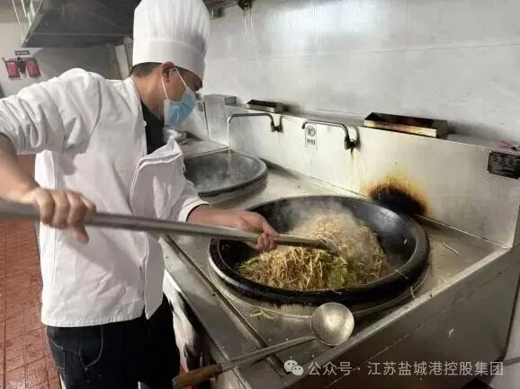 “鍋灶是我的戰(zhàn)場(chǎng),報(bào)表也是我的戰(zhàn)場(chǎng)。讓所有人吃好飯,和做好一道菜,道理是相通的——都要用心。”梅朋朋主要負(fù)責(zé)湘菜館和大樓食堂事務(wù),他不僅僅是爐灶前顛勺的廚師,更是保障整個(gè)湘菜館后廚和大豐港區(qū)港航服務(wù)中心食堂高效運(yùn)轉(zhuǎn)的“關(guān)鍵齒輪”;“百日攻堅(jiān)就是和時(shí)間賽跑,我們的任務(wù)就是讓大家吃得好、吃得安心,才能干勁十足。”在午餐高峰時(shí)段,他一個(gè)人能同時(shí)照看三口鍋,翻勺、調(diào)味、出鍋,動(dòng)作行云流水。即便汗流浹背,他也從不降低對(duì)菜品的要求。