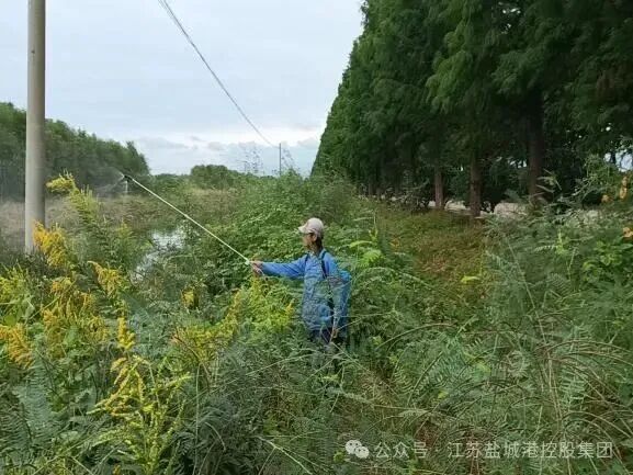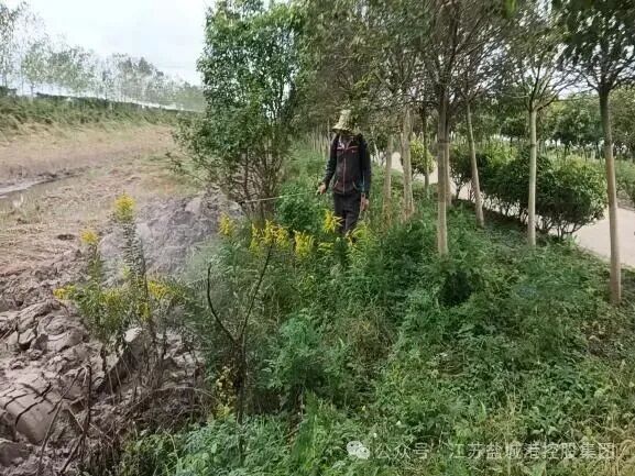 加拿大“一枝黃花”作為外來(lái)入侵物種,其根系發(fā)達(dá)且繁殖力極強(qiáng)。一旦在河道及周邊區(qū)域蔓延,不僅會(huì)與本土植物爭(zhēng)奪養(yǎng)分,破壞水域生態(tài)平衡,還可能堵塞河道,影響行洪排澇,對(duì)水環(huán)境構(gòu)成嚴(yán)重威脅。在“一枝黃花”尚未開花之際,鹽農(nóng)沿海農(nóng)業(yè)迅速啟動(dòng)了區(qū)域內(nèi)專項(xiàng)清理行動(dòng),重點(diǎn)對(duì)轄區(qū)內(nèi)河道兩岸、道路兩側(cè)及林地田間的“一枝黃花”進(jìn)行全面排查和集中清除。