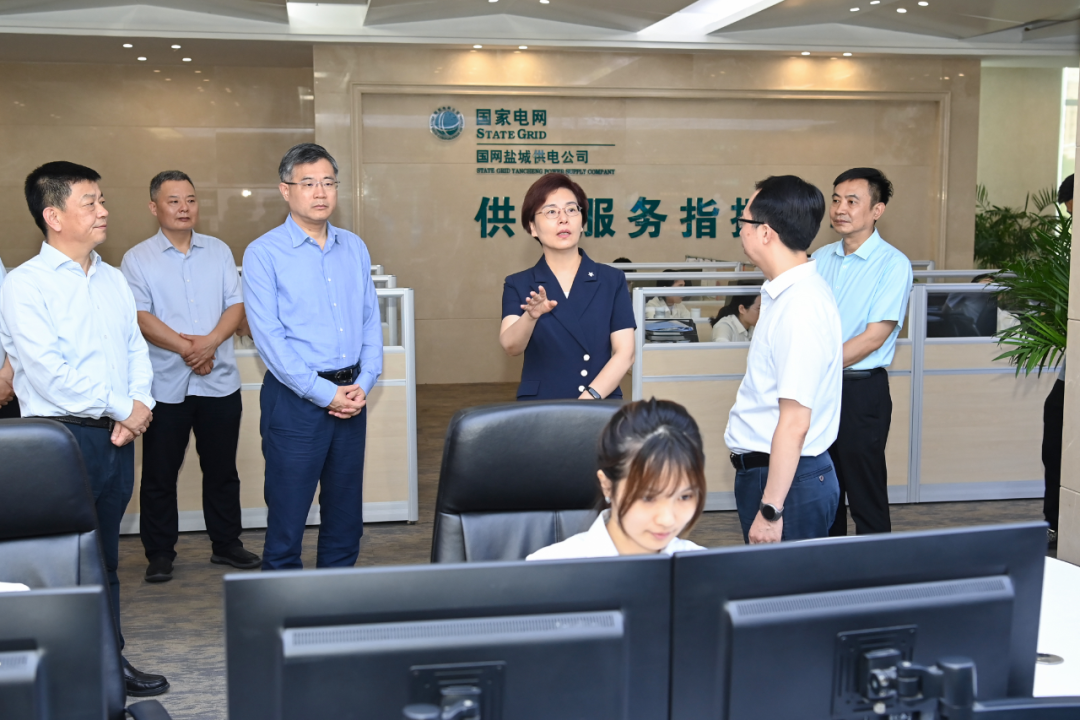 電力保供事關(guān)經(jīng)濟(jì)平穩(wěn)發(fā)展和人民群眾生產(chǎn)生活。徐纓首先來到國家電網(wǎng)鹽城供電公司電力調(diào)度控制中心,通過大屏幕了解全市電網(wǎng)結(jié)構(gòu)、用電負(fù)荷、新能源發(fā)電量、迎峰度夏工作等情況。“最高負(fù)荷多少?”“有什么應(yīng)對措施?”徐纓看得認(rèn)真、問得詳細(xì),充分肯定供電公司創(chuàng)新開展電力需求響應(yīng)工作取得的成效。“大家辛苦了!”走進(jìn)供電服務(wù)指揮中心,徐纓詳細(xì)聽取供電服務(wù)情況匯報(bào),點(diǎn)贊“不停電作業(yè)”等服務(wù)措施,鼓勵(lì)供電公司提升技術(shù)保障和快速反應(yīng)能力,以一流服務(wù)增強(qiáng)群眾獲得感幸福感。