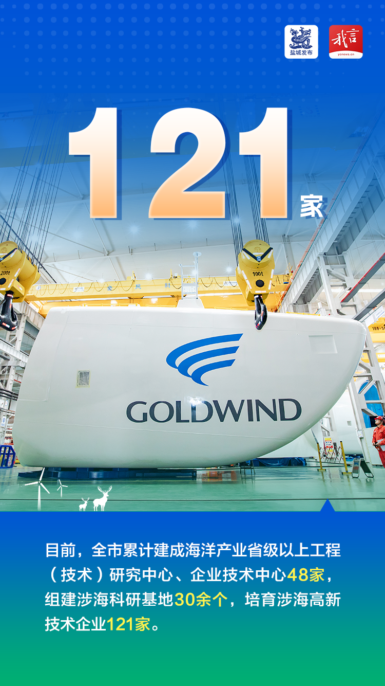 鹽城綠色低碳科創(chuàng)園不斷集聚涉海科創(chuàng)資源,其中江蘇沿海可再生能源技術(shù)創(chuàng)新中心獲批省級技術(shù)創(chuàng)新中心,江蘇海洋經(jīng)濟技術(shù)研究院投入運營,藍色種業(yè)黃海實驗室建設(shè)持續(xù)推進。目前,全市累計建成海洋產(chǎn)業(yè)省級以上工程(技術(shù))研究中心、企業(yè)技術(shù)中心48家,組建涉海科研基地30余個,培育涉海高新技術(shù)企業(yè)121家。