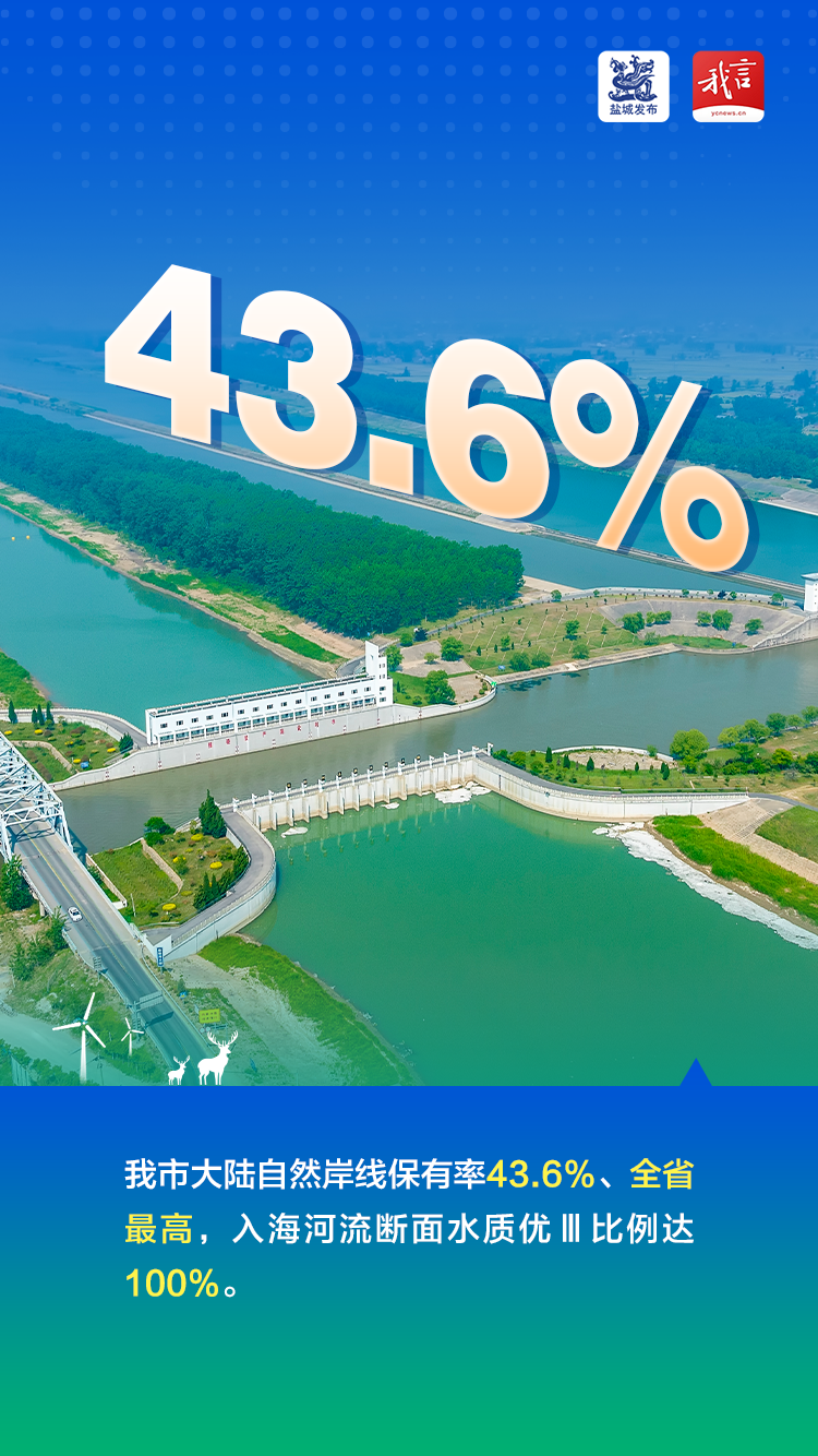 大陸自然岸線保有率43.6%、全省最高,入海河流斷面水質(zhì)優(yōu)Ⅲ比例達100%……