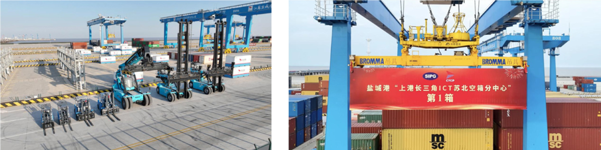 2024年7月,滬鹽兩港合作成立“上港長三角蘇北20萬標箱ICT空箱分中心”,年空箱周轉(zhuǎn)能力達20萬標箱,提供便捷提還箱服務(wù),與“滬鹽專線”協(xié)同引導(dǎo)企業(yè)“陸改水”,提高“鹽貨鹽運”比例。