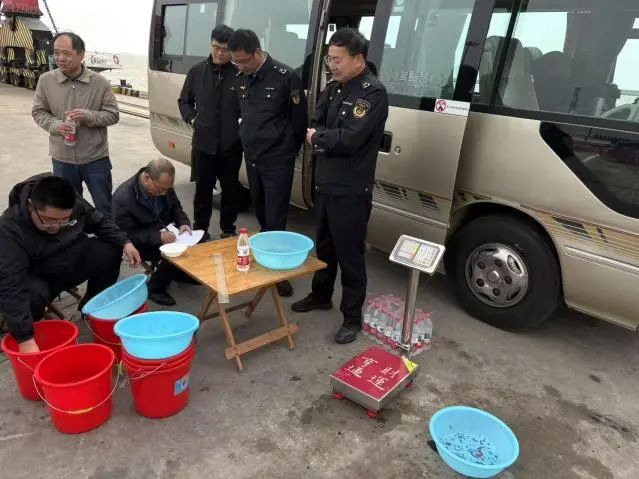 活動當(dāng)天,射陽港區(qū)3.5萬噸級碼頭現(xiàn)場秩序井然,射陽港區(qū)志愿者、農(nóng)業(yè)農(nóng)村局工作人員、技術(shù)專家及公證處人員共同參與放流。工作人員嚴(yán)格遵循操作規(guī)程,對蟹苗開展質(zhì)量檢驗、計數(shù)及裝運工作。放流前,技術(shù)人員對苗種進(jìn)行嚴(yán)格檢驗檢疫,確保無病蟲害、無藥物殘留,為蟹苗健康成長提供基礎(chǔ)保障。當(dāng)鮮活的蟹苗被緩緩放入海中,“小家伙們”迅速游向深海,現(xiàn)場響起陣陣掌聲。