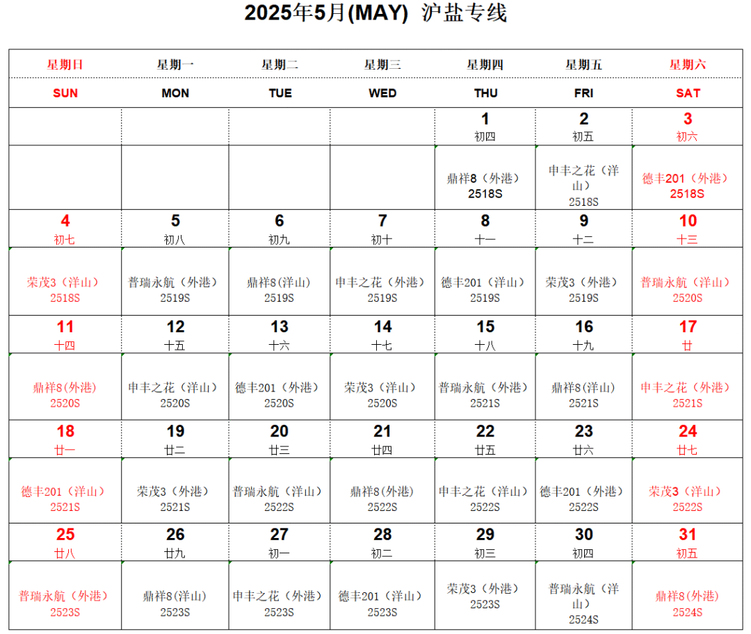 “滬鹽專線”承擔(dān)著鹽城港大豐港區(qū)至上海港洋山、外高橋的集裝箱進出口內(nèi)外貿(mào)同船內(nèi)支線業(yè)務(wù),由5艘船舶參與運營并構(gòu)建起穩(wěn)定的運輸力量。一般情況下,“滬鹽”航次的標準航期為5-6天,作為鹽城地區(qū)唯一內(nèi)支線,目前已實現(xiàn)“天天班”運營。“鹽連支線”作為積極響應(yīng)省委省政府“水運江蘇”戰(zhàn)略部署、緊密串聯(lián)沿海關(guān)鍵節(jié)點的重要航線,由1艘自有船舶承擔(dān)運營,該航線規(guī)劃每周執(zhí)行一次航次,同時具備根據(jù)實際貨運需求靈活調(diào)整航次的能力,增加運營船舶,以確保運輸效率與服務(wù)質(zhì)量的雙重提升。