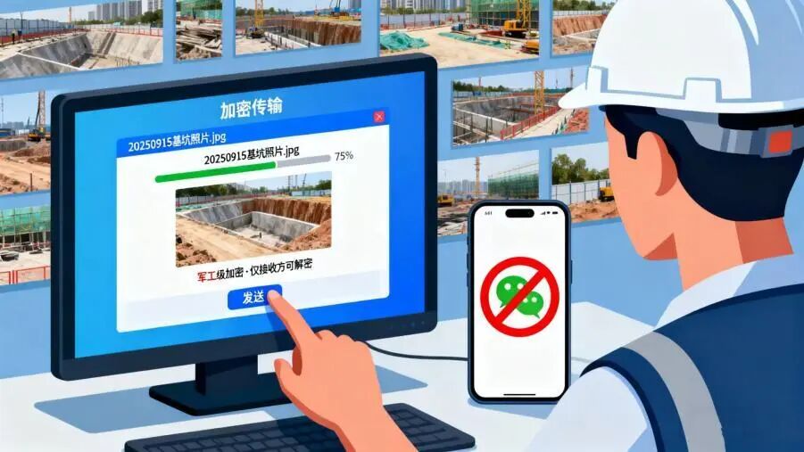 傳文件走“安全通道”:工地上拍的現(xiàn)場(chǎng)照片、填的日?qǐng)?bào)表,別用微信隨便發(fā),用公司專門的加密軟件傳;電腦里存的圖紙,定期備份到U盤或硬盤,萬一電腦壞了,資料還能找回來。