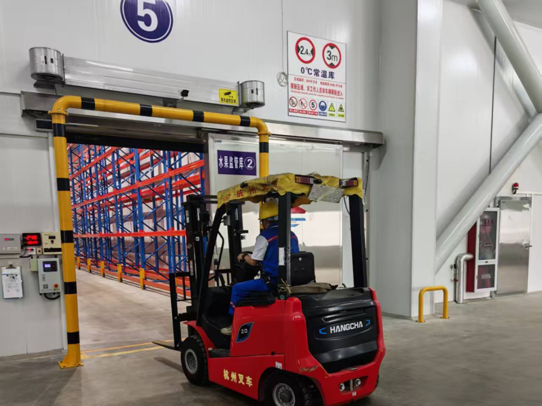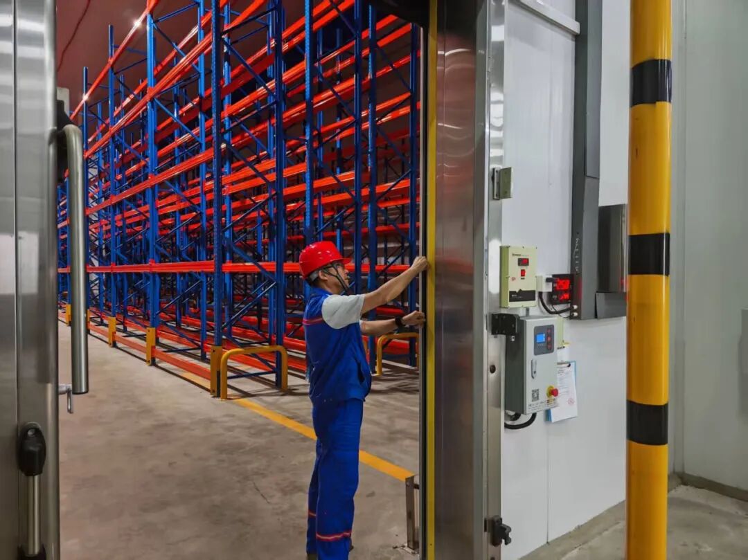 為減少冷量流失、降低設(shè)備運(yùn)行壓力,港匯保稅從“規(guī)范管理+物理防護(hù)”雙管齊下。優(yōu)化開門管理:明確冷庫門使用規(guī)范并張貼展板上墻,同步優(yōu)化作業(yè)流程,單次開門作業(yè)不超過5分鐘、非必要不頻繁開關(guān)門,減少冷量外泄;強(qiáng)化保溫修補(bǔ):定期檢查庫體保溫層,對發(fā)現(xiàn)的裂縫、孔洞等破損,采用高性能保溫材料及時修補(bǔ),從源頭減輕制冷設(shè)備負(fù)荷,既延長設(shè)備使用壽命,又進(jìn)一步減少能耗損耗。