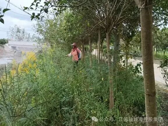 加拿大“一枝黃花”作為外來入侵物種,其根系發(fā)達(dá)且繁殖力極強(qiáng)。一旦在河道及周邊區(qū)域蔓延,不僅會(huì)與本土植物爭奪養(yǎng)分,破壞水域生態(tài)平衡,還可能堵塞河道,影響行洪排澇,對水環(huán)境構(gòu)成嚴(yán)重威脅。在“一枝黃花”尚未開花之際,鹽農(nóng)沿海農(nóng)業(yè)迅速啟動(dòng)了區(qū)域內(nèi)專項(xiàng)清理行動(dòng),重點(diǎn)對轄區(qū)內(nèi)河道兩岸、道路兩側(cè)及林地田間的“一枝黃花”進(jìn)行全面排查和集中清除。