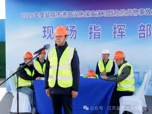 演練開始前,鹽城港集團(tuán)黨委委員、副總經(jīng)理丁安廣作動(dòng)員講話。演練結(jié)束后,現(xiàn)場(chǎng)總指揮、鹽城市交通運(yùn)輸局副局長(zhǎng)丁勝宣布應(yīng)急響應(yīng)終止,并作總結(jié)講話。他指出,此次演練有效檢驗(yàn)了全市港口設(shè)施保安與危險(xiǎn)貨物事故應(yīng)急預(yù)案的科學(xué)性和實(shí)用性,鍛煉了應(yīng)急救援隊(duì)伍的實(shí)戰(zhàn)能力,提升了跨部門、跨層級(jí)的協(xié)同處置水平。他強(qiáng)調(diào),要以此次演練為契機(jī),進(jìn)一步查找不足、完善機(jī)制、壓實(shí)責(zé)任,持續(xù)提升港口安全保障能力和應(yīng)急管理水平,為鹽城港航事業(yè)高質(zhì)量發(fā)展筑牢堅(jiān)實(shí)安全屏障。