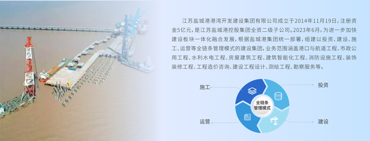 2020年在融入鹽城港集團這個大家庭之后,成功完成化繭成蝶的完美嬗變,工程管理日趨完善,工程技術日趨精細。先后承接了大豐港大宗農(nóng)產(chǎn)品倉儲物流項目、鹽城港響水港口岸大廈工程、江蘇鹽城港濱海港區(qū)綜合環(huán)境改造提升工程、射陽港區(qū)港海商務廣場項目、射陽港一類口岸查驗設施工程、響水港一類口岸查驗設施工程、大豐港區(qū)集裝箱碼頭堆場工程、鹽城港大豐港區(qū)安保船設施項目等重點項目。
