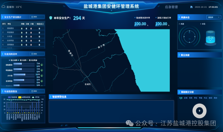 如今,鹽城港集團“平安港”建設成效顯著,響水港區(qū)、射陽港區(qū)高分通過港口設施保安年度核驗,智慧港口公司順利通過國家級綠色三星港口現(xiàn)場驗收。下一步,集團將持續(xù)深化“人防+技防”融合模式,加快“安健環(huán)”系統(tǒng)全集團部署,朝著“綠色、生態(tài)、智慧、平安、美麗”五新港口建設目標穩(wěn)步邁進,以高水平安全保障港口高質(zhì)量發(fā)展。